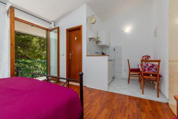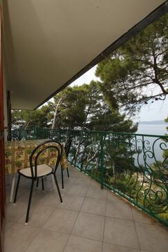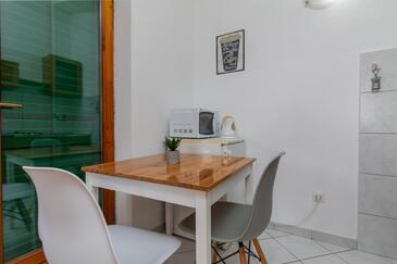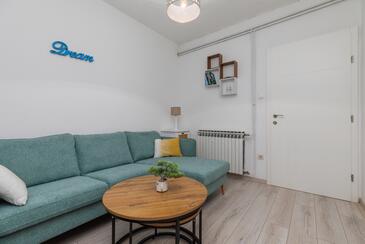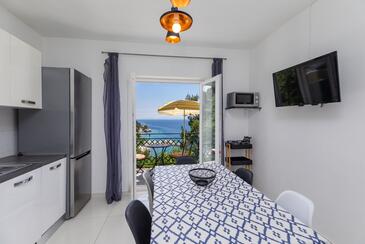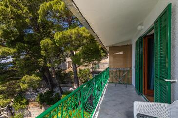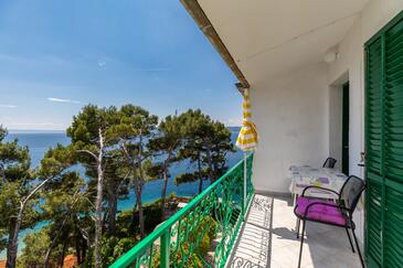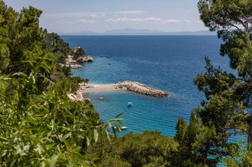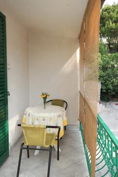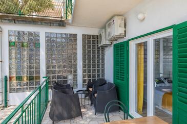 Ferienwohnung bietet Platz für 6 Gäste. Die Betten sind in Schlafzimmern, die es 3 gibt, innerhalb einer Gesamtfläche von 68m2, angeordnet. Die Gäste haben einen eigenen Balkon zur Verfügung, auf der sie in warmen Sommernächten genießen können. Das Apartment bietet Meerblick. Es ist erlaubt, Speisen auf dem Gemeinschafts-Grill vorzubereiten.