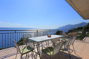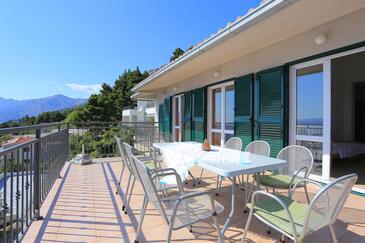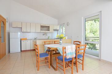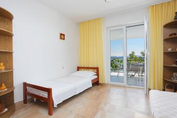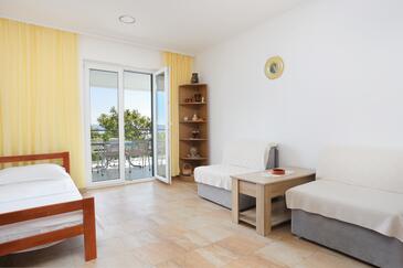 Ferienwohnung bietet Platz für 7 Gäste. Die Betten sind in Schlafzimmern, die es 3 gibt, und in Wohnzimmer, innerhalb einer Gesamtfläche von 88m2, angeordnet. Die Gäste haben eine eigene Terrasse zur Verfügung, auf der sie in warmen Sommernächten genießen können. Das Apartment bietet Meerblick. Es ist erlaubt, Speisen auf dem Gemeinschafts-Grill vorzubereiten. Eingang in die Unterkunftseinheit ist nicht mit einer Tür von anderen Räumen des Objektes getrennt.