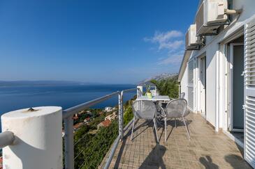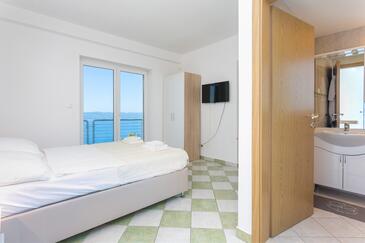 Ferienwohnung bietet Platz für 7 Gäste. Die Betten sind in Schlafzimmern, die es 2 gibt, und in Wohnzimmer, innerhalb einer Gesamtfläche von 77m2, angeordnet. Die Gäste haben eine eigene Terrasse zur Verfügung, auf der sie in warmen Sommernächten genießen können. Das Apartment bietet Meerblick. Es ist erlaubt, Speisen auf dem Gemeinschafts-Grill vorzubereiten. Während ihres Aufenthalts können Gäste das gemeinsam zur Nutzung stehende Schwimmbad benutzen.