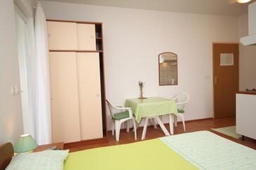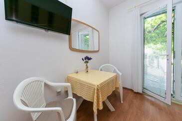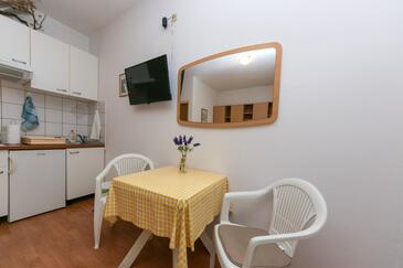 Ferienwohnung bietet Platz für 6 Gäste. Die Betten sind in Schlafzimmern, die es 1 gibt, und in Wohnzimmer, innerhalb einer Gesamtfläche von 67m2, angeordnet. Die Gäste haben eine eigene Terrasse zur Verfügung, auf der sie in warmen Sommernächten genießen können. Das Apartment bietet Meerblick. Es ist erlaubt, Speisen auf dem Gemeinschafts-Grill vorzubereiten. In der Unterkunftseinheit besteht die Möglichkeit des Mitbringens von Haustieren gegen Aufpreis.