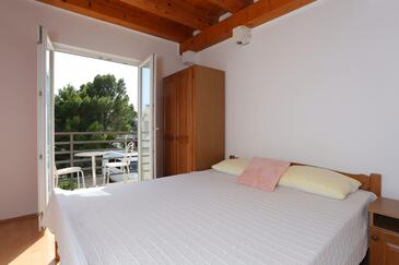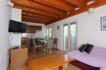 Ferienwohnung bietet Platz für 8 Gäste. Die Betten sind in Schlafzimmern, die es 2 gibt, und in Wohnzimmer, innerhalb einer Gesamtfläche von 100m2, angeordnet. Die Gäste haben eine eigene Terrasse zur Verfügung, auf der sie in warmen Sommernächten genießen können. Das Apartment bietet Meerblick. Es ist erlaubt, Speisen auf dem Gemeinschafts-Grill vorzubereiten.
