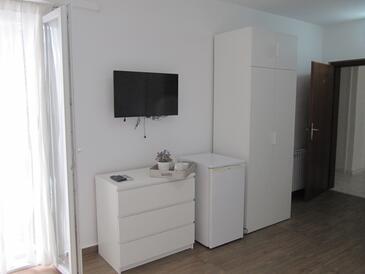 Ferienwohnung bietet Platz für 4 Gäste. Die Betten sind in Schlafzimmern, die es 1 gibt, und in Wohnzimmer, innerhalb einer Gesamtfläche von 50m2, angeordnet. Die Gäste haben eine eigene Terrasse zur Verfügung, auf der sie in warmen Sommernächten genießen können. Das Apartment bietet Meerblick. Es ist erlaubt, Speisen auf dem Gemeinschafts-Grill vorzubereiten. Während ihres Aufenthalts können Gäste das gemeinsam zur Nutzung stehende Schwimmbad benutzen.