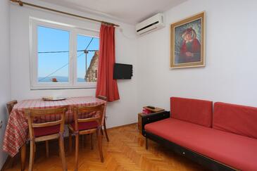 Ferienwohnung bietet Platz für 5 Gäste. Die Betten sind in Schlafzimmern, die es 2 gibt, innerhalb einer Gesamtfläche von 38m2, angeordnet. Die Gäste haben eine eigene Terrasse zur Verfügung, auf der sie in warmen Sommernächten genießen können. Das Apartment bietet Meerblick. In der Unterkunftseinheit besteht die Möglichkeit des Mitbringens von Haustieren, und die Dienstleistung ist im Preis der Unterkunft enthalten.