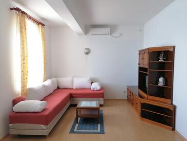 Ferienwohnung bietet Platz für 4 Gäste. Die Betten sind in Schlafzimmern, die es 2 gibt, innerhalb einer Gesamtfläche von 42m2, angeordnet. Die Gäste haben einen eigenen Balkon zur Verfügung, auf der sie in warmen Sommernächten genießen können. Das Apartment bietet Meerblick. Es ist erlaubt, Speisen auf dem Gemeinschafts-Grill vorzubereiten.