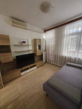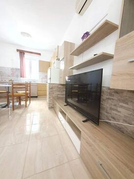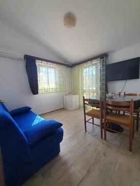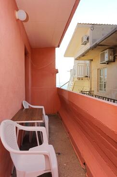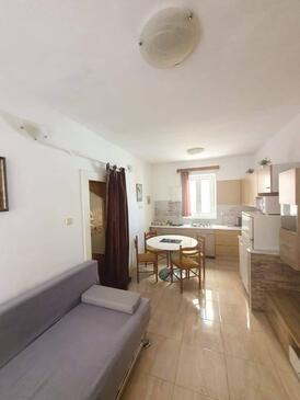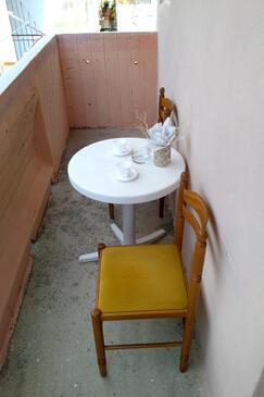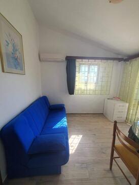 Haus bietet Platz für 6 Gäste. Die Betten sind in Schlafzimmern, die es 3 gibt, innerhalb einer Gesamtfläche von 77m2, angeordnet. Die Gäste haben einen eigenen Balkon zur Verfügung, auf der sie in warmen Sommernächten genießen können. Das Haus bietet Meerblick. Räume der gebuchten Unterkunftseinheit werden nicht in eine Ganze verbunden.