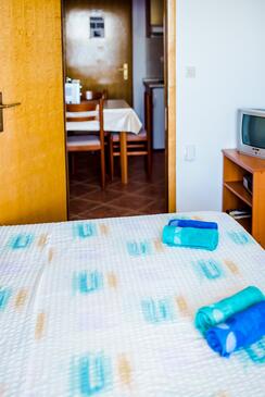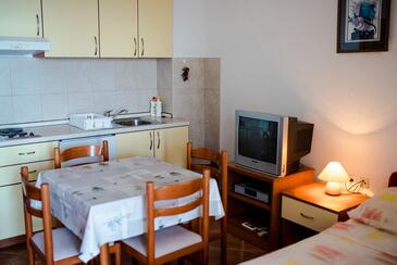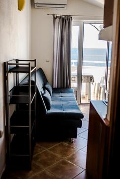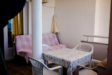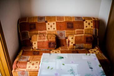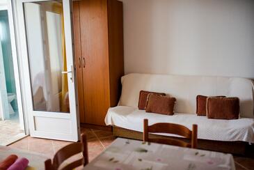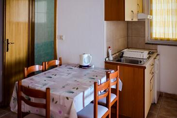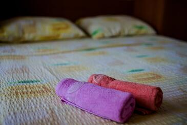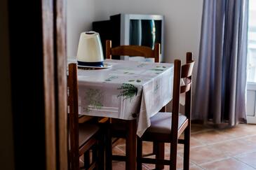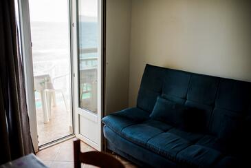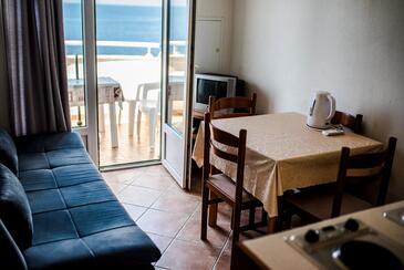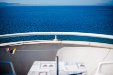 Ferienwohnung bietet Platz für 4 Gäste. Die Betten sind in Schlafzimmern, die es 2 gibt, innerhalb einer Gesamtfläche von 25m2, angeordnet. Die Gäste haben eine eigene Terrasse zur Verfügung, auf der sie in warmen Sommernächten genießen können. Das Apartment bietet Meerblick.