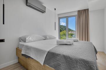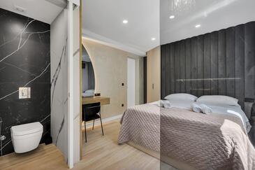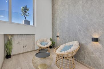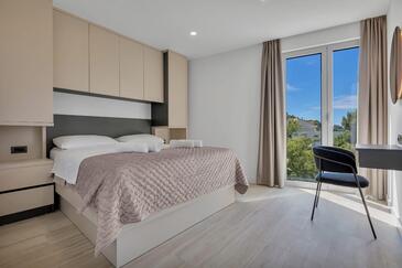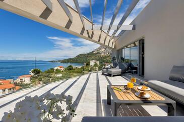 Ferienwohnung bietet Platz für 8 Gäste. Die Betten sind in Schlafzimmern, die es 4 gibt, innerhalb einer Gesamtfläche von 162m2, angeordnet. Die Gäste haben eine eigene Terrasse zur Verfügung, auf der sie in warmen Sommernächten genießen können. Das Apartment bietet Meerblick. Es ist erlaubt, Speisen auf dem Gemeinschafts-Grill vorzubereiten.