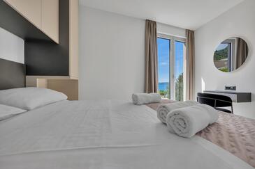 Ferienwohnung bietet Platz für 9 Gäste. Die Betten sind in Schlafzimmern, die es 4 gibt, und in Wohnzimmer, innerhalb einer Gesamtfläche von 162m2, angeordnet. Die Gäste haben eine eigene Terrasse zur Verfügung, auf der sie in warmen Sommernächten genießen können. Das Apartment bietet Meerblick. Es ist erlaubt, Speisen auf dem Gemeinschafts-Grill vorzubereiten.