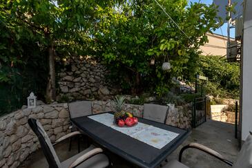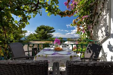 Ferienwohnung bietet Platz für 6 Gäste. Die Betten sind in Schlafzimmern, die es 2 gibt, und in Wohnzimmer, innerhalb einer Gesamtfläche von 65m2, angeordnet. Die Gäste haben einen eigenen Balkon zur Verfügung, auf der sie in warmen Sommernächten genießen können. Das Apartment bietet Meerblick. Es ist erlaubt, Speisen auf dem Gemeinschafts-Grill vorzubereiten.