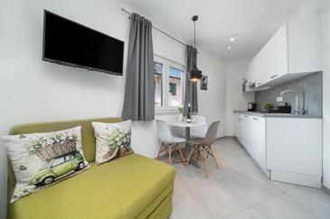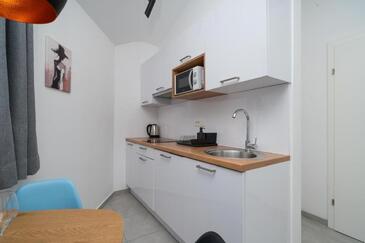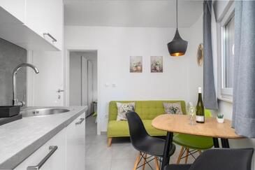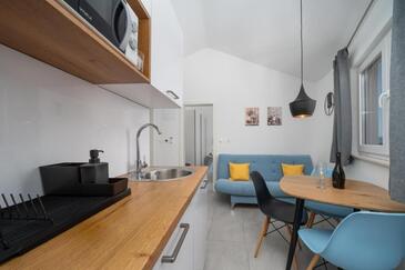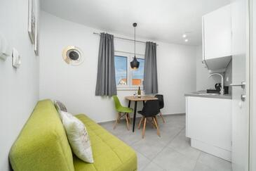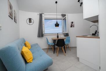 Ferienwohnung bietet Platz für 2 Gäste. Die Betten sind in Schlafzimmern, die es 1 gibt, innerhalb einer Gesamtfläche von 22m2, angeordnet. Die Gäste haben einen eigenen Balkon zur Verfügung, auf der sie in warmen Sommernächten genießen können. Das Apartment bietet Meerblick.