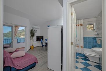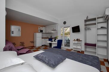 Ferienwohnung bietet Platz für 3 Gäste. Die Betten sind in Schlafzimmern, die es 1 gibt, und in Wohnzimmer, innerhalb einer Gesamtfläche von 33m2, angeordnet. Die Gäste haben eine eigene Terrasse zur Verfügung, auf der sie in warmen Sommernächten genießen können. Das Apartment bietet Meerblick.
