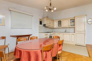 Ferienwohnung bietet Platz für 7 Gäste. Die Betten sind in Schlafzimmern, die es 3 gibt, innerhalb einer Gesamtfläche von 98m2, angeordnet. Die Gäste haben einen eigenen Balkon zur Verfügung, auf der sie in warmen Sommernächten genießen können. Das Apartment bietet Meerblick. In der Unterkunftseinheit besteht die Möglichkeit des Mitbringens von Haustieren gegen Aufpreis.