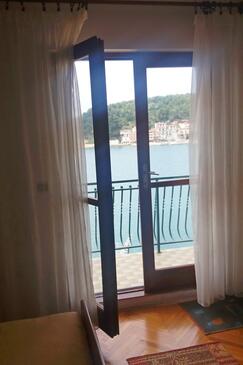 Ferienwohnung bietet Platz für 8 Gäste. Die Betten sind in Schlafzimmern, die es 3 gibt, innerhalb einer Gesamtfläche von 71m2, angeordnet. Die Gäste haben einen eigenen Balkon zur Verfügung, auf der sie in warmen Sommernächten genießen können. Das Apartment bietet Meerblick. Es ist erlaubt, Speisen auf dem Gemeinschafts-Grill vorzubereiten.