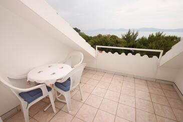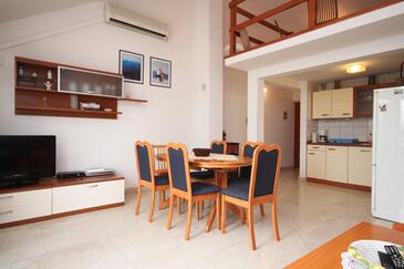 Ferienwohnung bietet Platz für 8 Gäste. Die Betten sind in Schlafzimmern, die es 2 gibt, und in Wohnzimmer, innerhalb einer Gesamtfläche von 72m2, angeordnet. Die Gäste haben eine eigene Terrasse zur Verfügung, auf der sie in warmen Sommernächten genießen können. Das Apartment bietet Meerblick. Es ist erlaubt, Speisen auf dem Gemeinschafts-Grill vorzubereiten. In der Unterkunftseinheit besteht die Möglichkeit des Mitbringens von Haustieren gegen Aufpreis.