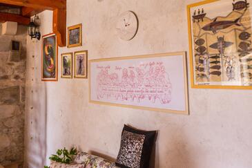 Haus bietet Platz für 5 Gäste. Die Betten sind in Schlafzimmern, die es 2 gibt, und in Wohnzimmer, innerhalb einer Gesamtfläche von 79m2, angeordnet. Die Gäste haben eine eigene Terrasse zur Verfügung, auf der sie in warmen Sommernächten genießen können. Das Haus bietet Meerblick. Es ist erlaubt, Speisen auf dem Gemeinschafts-Grill vorzubereiten. In der gebuchten Unterkunftseinheit zahlt man am Ort ein Depositum ( der Preis ist an der Internetseite angeführt ).