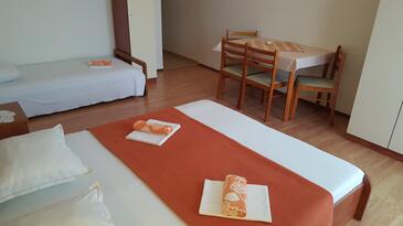 Ferienwohnung bietet Platz für 4 Gäste. Die Betten sind in Schlafzimmern, die es 1 gibt, und in Esszimmer, innerhalb einer Gesamtfläche von 30m2, angeordnet. Die Gäste haben eine eigene Terrasse zur Verfügung, auf der sie in warmen Sommernächten genießen können. Es ist erlaubt, Speisen auf dem Gemeinschafts-Grill vorzubereiten.
