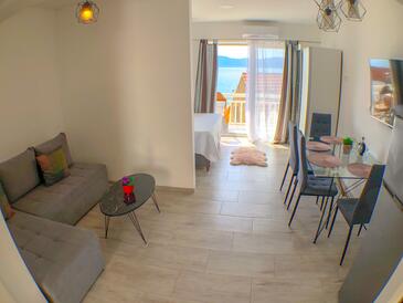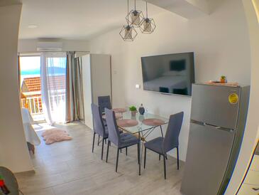 Studio bietet Platz für 2 Gäste. Die Betten sind in Schlafzimmern, die es 1 gibt, innerhalb einer Gesamtfläche von 23m2, angeordnet. Die Gäste haben einen eigenen Balkon zur Verfügung, auf der sie in warmen Sommernächten genießen können. Das Studio-Apartment bietet Meerblick. Es ist erlaubt, Speisen auf dem Gemeinschafts-Grill vorzubereiten.
