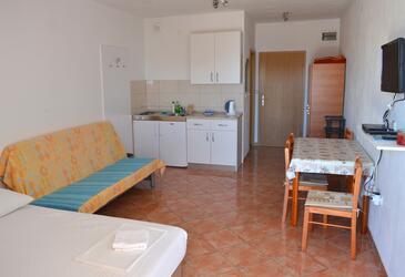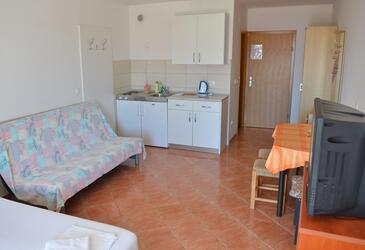 Ferienwohnung bietet Platz für 4 Gäste. Die Betten sind in Schlafzimmern, die es 1 gibt, und in Wohnzimmer, innerhalb einer Gesamtfläche von 27m2, angeordnet. Die Gäste haben einen eigenen Balkon zur Verfügung, auf der sie in warmen Sommernächten genießen können. Das Apartment bietet Meerblick. Es ist erlaubt, Speisen auf dem Gemeinschafts-Grill vorzubereiten.