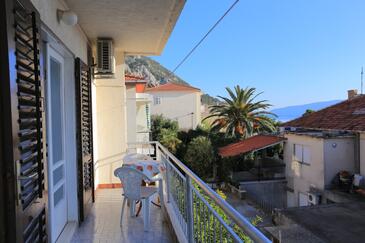 Ferienwohnung bietet Platz für 6 Gäste. Die Betten sind in Schlafzimmern, die es 3 gibt, innerhalb einer Gesamtfläche von 65m2, angeordnet. Die Gäste haben einen eigenen Balkon zur Verfügung, auf der sie in warmen Sommernächten genießen können. Das Apartment bietet Meerblick. Es ist erlaubt, Speisen auf dem Gemeinschafts-Grill vorzubereiten.