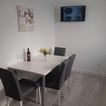Ferienwohnung bietet Platz für 5 Gäste. Die Betten sind in Schlafzimmern, die es 2 gibt, und in Esszimmer, innerhalb einer Gesamtfläche von 44m2, angeordnet. Die Gäste haben einen eigenen Balkon zur Verfügung, auf der sie in warmen Sommernächten genießen können. Das Apartment bietet Meerblick. Es ist erlaubt, Speisen auf dem Gemeinschafts-Grill vorzubereiten.
