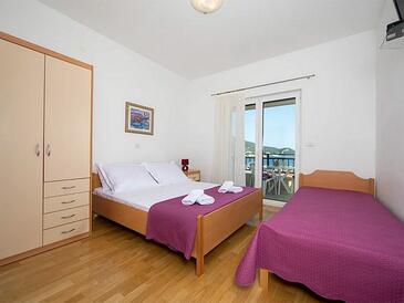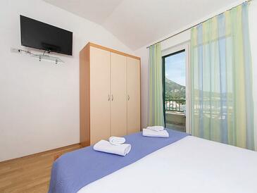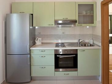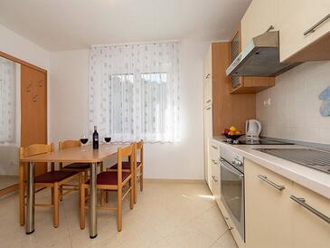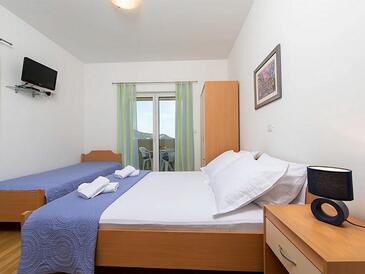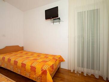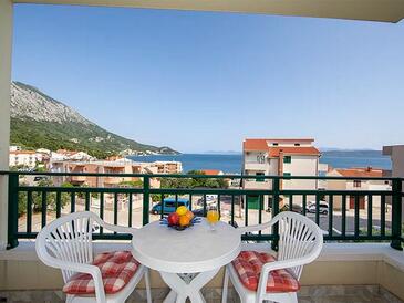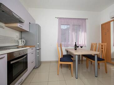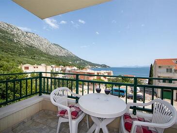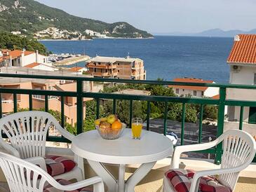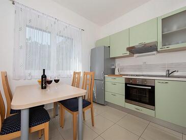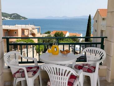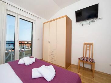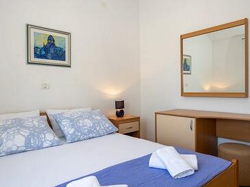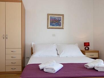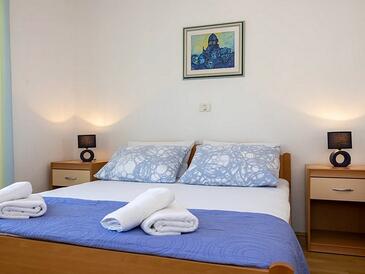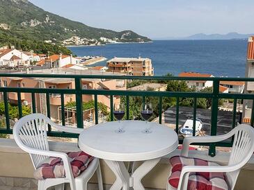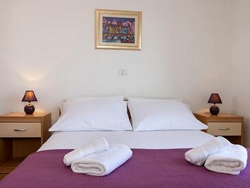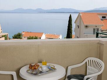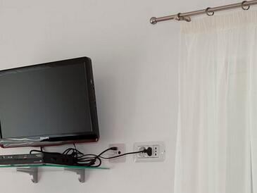 Ferienwohnung bietet Platz für 5 Gäste. Die Betten sind in Schlafzimmern, die es 2 gibt, innerhalb einer Gesamtfläche von 50m2, angeordnet. Die Gäste haben eine eigene Terrasse zur Verfügung, auf der sie in warmen Sommernächten genießen können. Das Apartment bietet Meerblick. Es ist erlaubt, Speisen auf dem Gemeinschafts-Grill vorzubereiten.