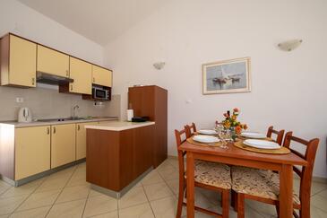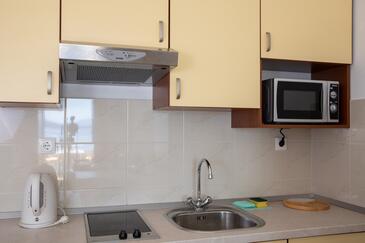 Ferienwohnung bietet Platz für 5 Gäste. Die Betten sind in Schlafzimmern, die es 1 gibt, und in Wohnzimmer, innerhalb einer Gesamtfläche von 42m2, angeordnet. Die Gäste haben eine eigene Terrasse zur Verfügung, auf der sie in warmen Sommernächten genießen können. Das Apartment bietet Meerblick.