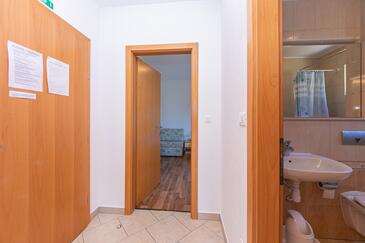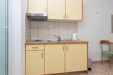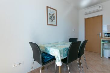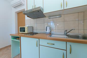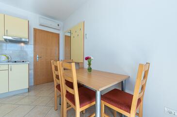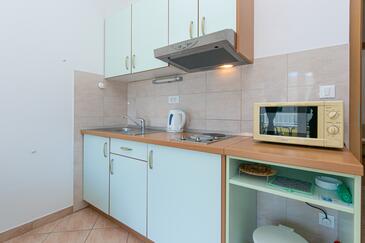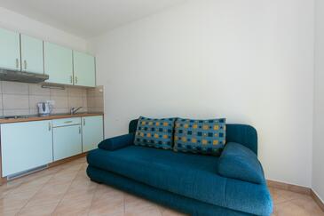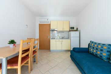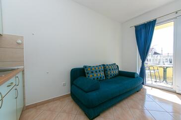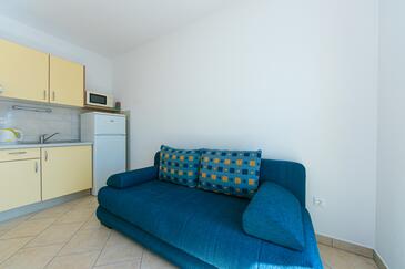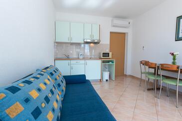 Ferienwohnung bietet Platz für 5 Gäste. Die Betten sind in Schlafzimmern, die es 1 gibt, und in Wohnzimmer, innerhalb einer Gesamtfläche von 30m2, angeordnet. Die Gäste haben einen eigenen Balkon zur Verfügung, auf der sie in warmen Sommernächten genießen können. Das Apartment bietet Meerblick. Es ist erlaubt, Speisen auf dem Gemeinschafts-Grill vorzubereiten.