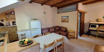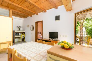 Ferienwohnung bietet Platz für 4 Gäste. Die Betten sind in Schlafzimmern, die es 1 gibt, und in Wohnzimmer, innerhalb einer Gesamtfläche von 40m2, angeordnet. Die Gäste haben eine eigene Terrasse zur Verfügung, auf der sie in warmen Sommernächten genießen können.