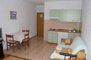 Ferienwohnung bietet Platz für 3 Gäste. Die Betten sind in Schlafzimmern, die es 1 gibt, und in Esszimmer, innerhalb einer Gesamtfläche von 25m2, angeordnet. Die Gäste haben einen eigenen Balkon zur Verfügung, auf der sie in warmen Sommernächten genießen können. Das Apartment bietet Meerblick. Es ist erlaubt, Speisen auf dem Gemeinschafts-Grill vorzubereiten.