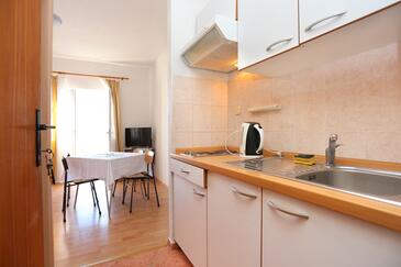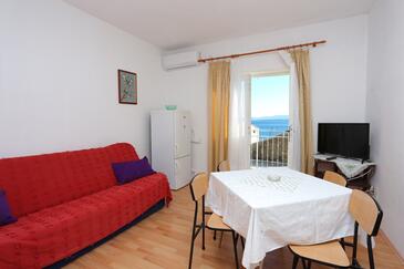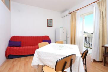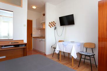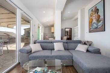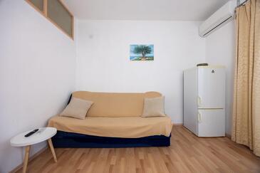 Ferienwohnung bietet Platz für 4 Gäste. Die Betten sind in Schlafzimmern, die es 2 gibt, innerhalb einer Gesamtfläche von 56m2, angeordnet. Die Gäste haben eine eigene Terrasse zur Verfügung, auf der sie in warmen Sommernächten genießen können. Das Apartment bietet Meerblick. Es ist erlaubt, Speisen auf dem Gemeinschafts-Grill vorzubereiten. In der Unterkunftseinheit besteht die Möglichkeit des Mitbringens von Haustieren gegen Aufpreis.