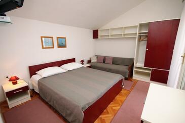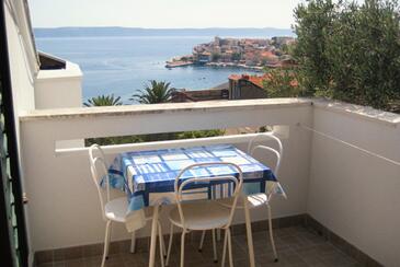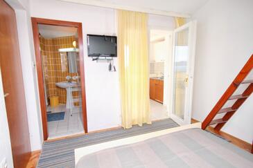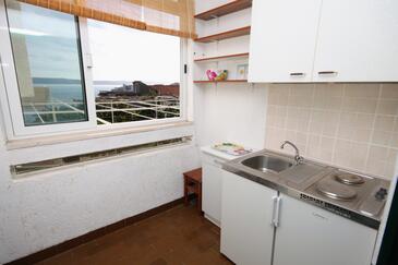 Ferienwohnung bietet Platz für 6 Gäste. Die Betten sind in Schlafzimmern, die es 2 gibt, innerhalb einer Gesamtfläche von 44m2, angeordnet. Die Gäste haben eine eigene Terrasse zur Verfügung, auf der sie in warmen Sommernächten genießen können. Das Apartment bietet Meerblick. Es ist erlaubt, Speisen auf dem Gemeinschafts-Grill vorzubereiten.