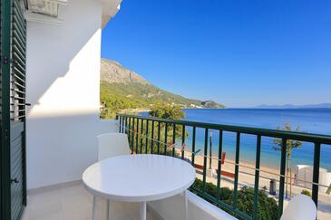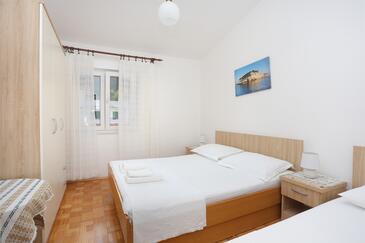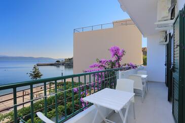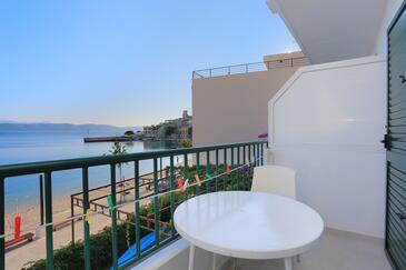 Ferienwohnung bietet Platz für 9 Gäste. Die Betten sind in Schlafzimmern, die es 3 gibt, innerhalb einer Gesamtfläche von 77m2, angeordnet. Die Gäste haben einen eigenen Balkon zur Verfügung, auf der sie in warmen Sommernächten genießen können. Das Apartment bietet Meerblick. Es ist erlaubt, Speisen auf dem Gemeinschafts-Grill vorzubereiten.