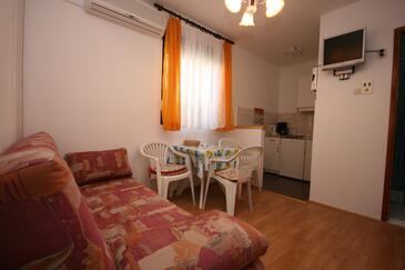 Ferienwohnung bietet Platz für 4 Gäste. Die Betten sind in Schlafzimmern, die es 1 gibt, und in Wohnzimmer, innerhalb einer Gesamtfläche von 21m2, angeordnet. Die Gäste haben einen eigenen Balkon zur Verfügung, auf der sie in warmen Sommernächten genießen können. Das Apartment bietet Meerblick. Es ist erlaubt, Speisen auf dem Gemeinschafts-Grill vorzubereiten. In der Unterkunftseinheit besteht die Möglichkeit des Mitbringens von Haustieren gegen Aufpreis.