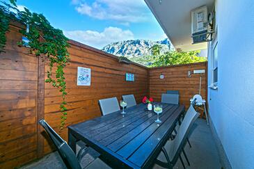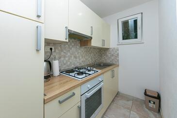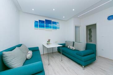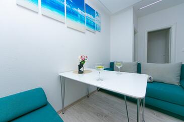 Ferienwohnung bietet Platz für 8 Gäste. Die Betten sind in Schlafzimmern, die es 2 gibt, und in Wohnzimmer, innerhalb einer Gesamtfläche von 50m2, angeordnet. Die Gäste haben eine eigene Terrasse zur Verfügung, auf der sie in warmen Sommernächten genießen können. Es ist erlaubt, Speisen auf dem Gemeinschafts-Grill vorzubereiten. In der Unterkunftseinheit besteht die Möglichkeit des Mitbringens von Haustieren gegen Aufpreis.