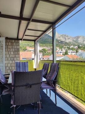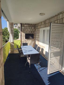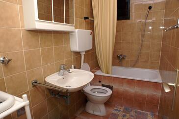 Ferienwohnung bietet Platz für 8 Gäste. Die Betten sind in Schlafzimmern, die es 2 gibt, und in Esszimmer, innerhalb einer Gesamtfläche von 52m2, angeordnet. Die Gäste haben eine eigene Terrasse zur Verfügung, auf der sie in warmen Sommernächten genießen können. Es ist erlaubt, Speisen auf dem Gemeinschafts-Grill vorzubereiten. In der Unterkunftseinheit besteht die Möglichkeit des Mitbringens von Haustieren gegen Aufpreis.