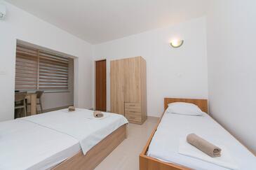 Ferienwohnung bietet Platz für 5 Gäste. Die Betten sind in Schlafzimmern, die es 2 gibt, innerhalb einer Gesamtfläche von 29m2, angeordnet. Die Gäste haben einen eigenen Balkon zur Verfügung, auf der sie in warmen Sommernächten genießen können. Es ist erlaubt, Speisen auf dem Gemeinschafts-Grill vorzubereiten. Unterkunftseinheit hat Räume, die von dem Rest der Einheit abgetrennt werden.