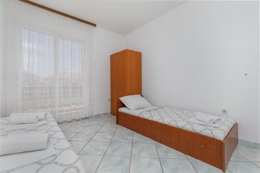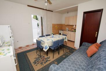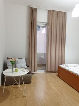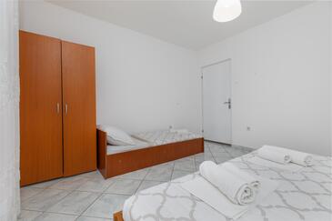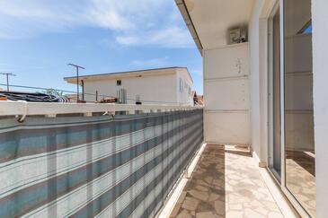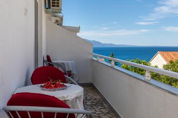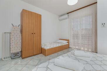 Ferienwohnung bietet Platz für 8 Gäste. Die Betten sind in Schlafzimmern, die es 3 gibt, innerhalb einer Gesamtfläche von 67m2, angeordnet. Die Gäste haben einen eigenen Balkon zur Verfügung, auf der sie in warmen Sommernächten genießen können. Das Apartment bietet Meerblick. Es ist erlaubt, Speisen auf dem Gemeinschafts-Grill vorzubereiten.