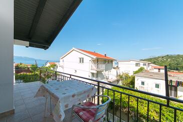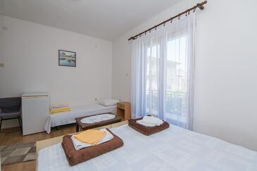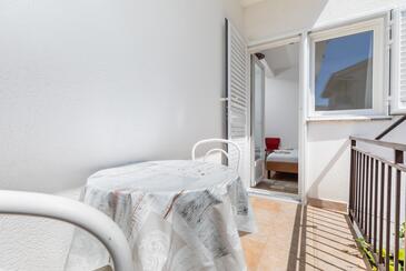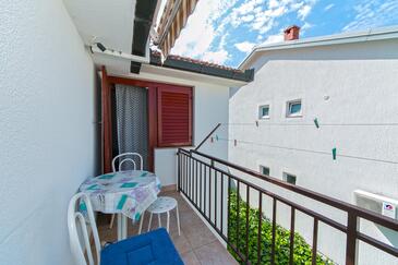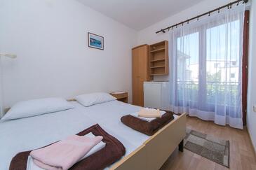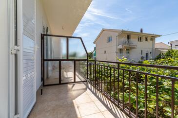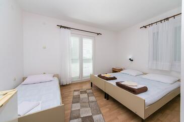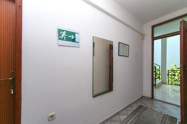 Ferienwohnung bietet Platz für 10 Gäste. Die Betten sind in Schlafzimmern, die es 5 gibt, innerhalb einer Gesamtfläche von 83m2, angeordnet. Die Gäste haben eine eigene Terrasse zur Verfügung, auf der sie in warmen Sommernächten genießen können. Es ist erlaubt, Speisen auf dem Gemeinschafts-Grill vorzubereiten.