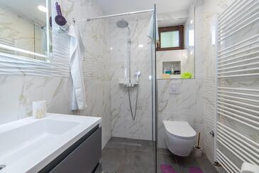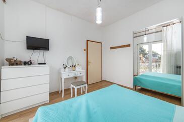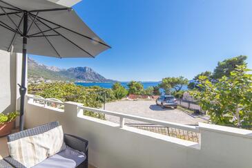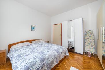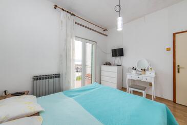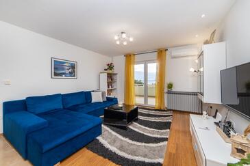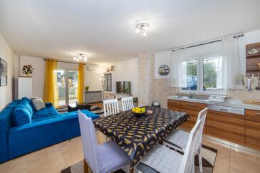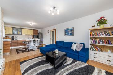 Ferienwohnung bietet Platz für 6 Gäste. Die Betten sind in Schlafzimmern, die es 2 gibt, und in Wohnzimmer, innerhalb einer Gesamtfläche von 70m2, angeordnet. Die Gäste haben eine eigene Terrasse zur Verfügung, auf der sie in warmen Sommernächten genießen können. Das Apartment bietet Meerblick. Es ist erlaubt, Speisen auf dem Gemeinschafts-Grill vorzubereiten.