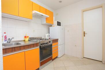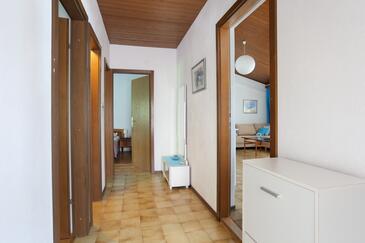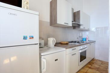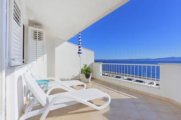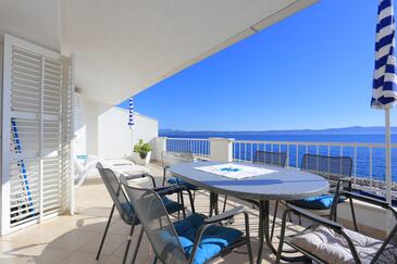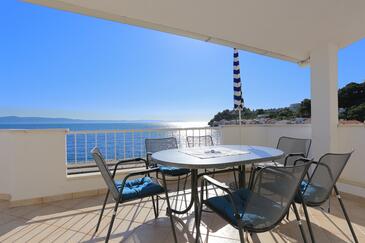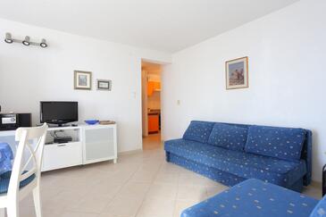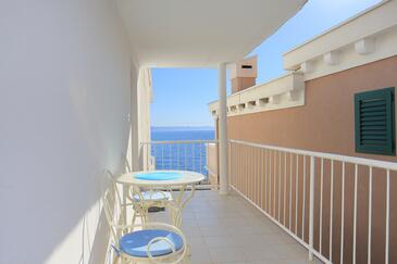 Ferienwohnung bietet Platz für 6 Gäste. Die Betten sind in Schlafzimmern, die es 2 gibt, und in Wohnzimmer, innerhalb einer Gesamtfläche von 67m2, angeordnet. Die Gäste haben eine eigene Terrasse zur Verfügung, auf der sie in warmen Sommernächten genießen können. Das Apartment bietet Meerblick. Es ist erlaubt, Speisen auf dem Gemeinschafts-Grill vorzubereiten.