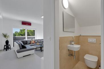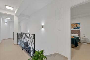 Ferienwohnung bietet Platz für 6 Gäste. Die Betten sind in Schlafzimmern, die es 3 gibt, innerhalb einer Gesamtfläche von 134m2, angeordnet. Die Gäste haben eine eigene Terrasse zur Verfügung, auf der sie in warmen Sommernächten genießen können. Das Apartment bietet Meerblick. Es ist erlaubt, Speisen auf dem Gemeinschafts-Grill vorzubereiten. In der gebuchten Unterkunftseinheit zahlt man am Ort ein Depositum ( der Preis ist an der Internetseite angeführt ).