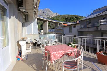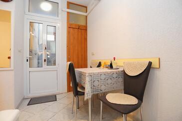 Ferienwohnung bietet Platz für 9 Gäste. Die Betten sind in Schlafzimmern, die es 3 gibt, innerhalb einer Gesamtfläche von 70m2, angeordnet. Die Gäste haben eine eigene Terrasse zur Verfügung, auf der sie in warmen Sommernächten genießen können. Das Apartment bietet Meerblick. Es ist erlaubt, Speisen auf dem Gemeinschafts-Grill vorzubereiten. In der Unterkunftseinheit besteht die Möglichkeit des Mitbringens von Haustieren gegen Aufpreis.