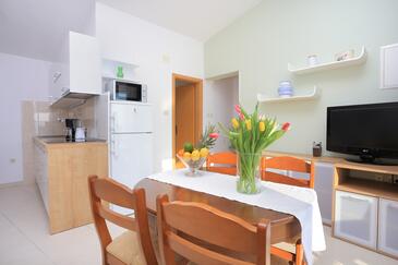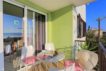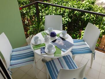 Ferienwohnung bietet Platz für 4 Gäste. Die Betten sind in Schlafzimmern, die es 2 gibt, innerhalb einer Gesamtfläche von 54m2, angeordnet. Die Gäste haben eine eigene Terrasse zur Verfügung, auf der sie in warmen Sommernächten genießen können. Das Apartment bietet Meerblick.