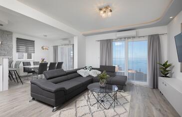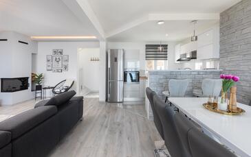 Haus bietet Platz für 6 Gäste. Die Betten sind in Schlafzimmern, die es 2 gibt, und in Wohnzimmer, innerhalb einer Gesamtfläche von 100m2, angeordnet. Die Gäste haben eine eigene Terrasse zur Verfügung, auf der sie in warmen Sommernächten genießen können. Das Haus bietet Meerblick. Für vollen Genuss und Entspannung gibt es einen privaten Grill für Gäste dieser Unterkunft. Während ihres Aufenthalts können sich Gäste im privaten Schwimmbad entspannen. In der Unterkunftseinheit besteht die Möglichkeit des Mitbringens von Haustieren gegen Aufpreis.