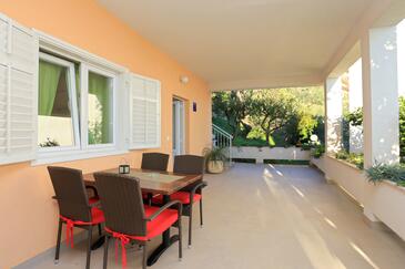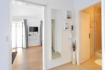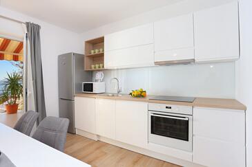 Ferienwohnung bietet Platz für 4 Gäste. Die Betten sind in Schlafzimmern, die es 1 gibt, und in Wohnzimmer, innerhalb einer Gesamtfläche von 31m2, angeordnet. Die Gäste haben eine eigene Terrasse zur Verfügung, auf der sie in warmen Sommernächten genießen können. Das Apartment bietet Meerblick. Es ist erlaubt, Speisen auf dem Gemeinschafts-Grill vorzubereiten.