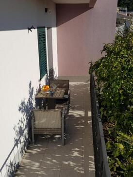 Ferienwohnung bietet Platz für 8 Gäste. Die Betten sind in Schlafzimmern, die es 3 gibt, und in Wohnzimmer, innerhalb einer Gesamtfläche von 68m2, angeordnet. Die Gäste haben eine eigene Terrasse zur Verfügung, auf der sie in warmen Sommernächten genießen können. Das Apartment bietet Meerblick. Es ist erlaubt, Speisen auf dem Gemeinschafts-Grill vorzubereiten.