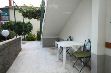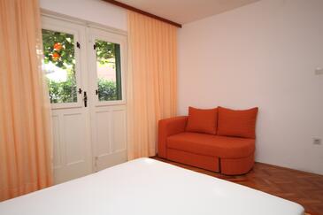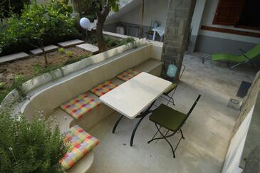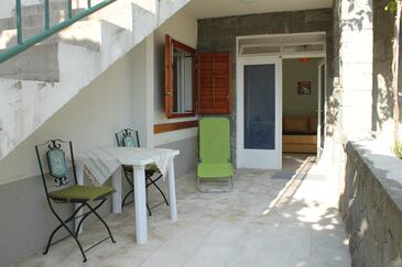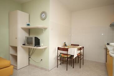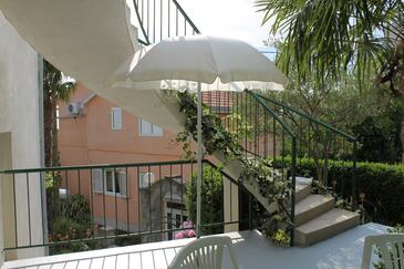 Ferienwohnung bietet Platz für 5 Gäste. Die Betten sind in Schlafzimmern, die es 2 gibt, und in Wohnzimmer, innerhalb einer Gesamtfläche von 55m2, angeordnet. Die Gäste haben eine eigene Terrasse zur Verfügung, auf der sie in warmen Sommernächten genießen können. Das Apartment bietet Meerblick. Es ist erlaubt, Speisen auf dem Gemeinschafts-Grill vorzubereiten. In der Unterkunftseinheit besteht die Möglichkeit des Mitbringens von Haustieren gegen Aufpreis.