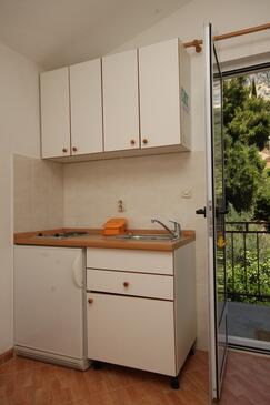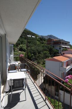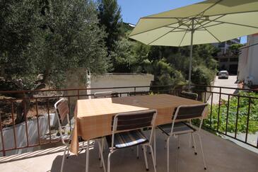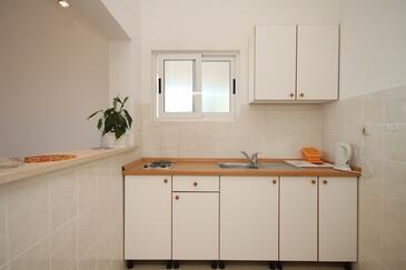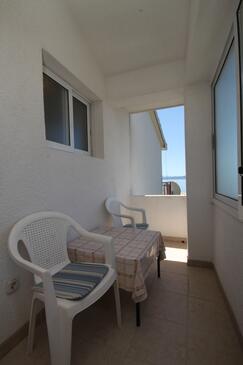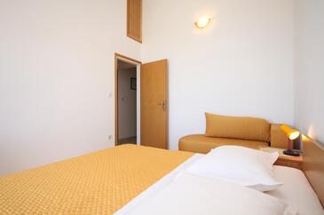 Ferienwohnung bietet Platz für 6 Gäste. Die Betten sind in Schlafzimmern, die es 2 gibt, und in Wohnzimmer, innerhalb einer Gesamtfläche von 68m2, angeordnet. Die Gäste haben eine eigene Terrasse zur Verfügung, auf der sie in warmen Sommernächten genießen können. Das Apartment bietet Meerblick. Es ist erlaubt, Speisen auf dem Gemeinschafts-Grill vorzubereiten.