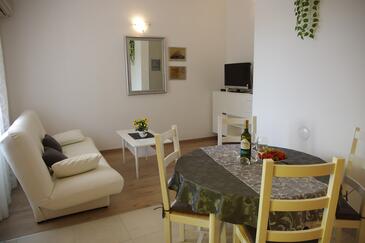 Ferienwohnung bietet Platz für 4 Gäste. Die Betten sind in Schlafzimmern, die es 2 gibt, innerhalb einer Gesamtfläche von 46m2, angeordnet. Die Gäste haben eine eigene Terrasse zur Verfügung, auf der sie in warmen Sommernächten genießen können. Das Apartment bietet Meerblick. Es ist erlaubt, Speisen auf dem Gemeinschafts-Grill vorzubereiten.