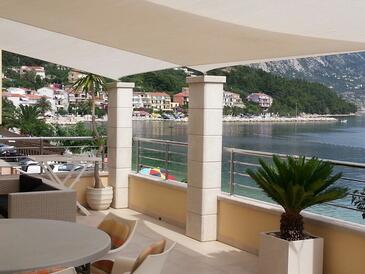 Ferienwohnung bietet Platz für 7 Gäste. Die Betten sind in Schlafzimmern, die es 4 gibt, innerhalb einer Gesamtfläche von 84m2, angeordnet. Die Gäste haben eine eigene Terrasse zur Verfügung, auf der sie in warmen Sommernächten genießen können. Das Apartment bietet Meerblick.